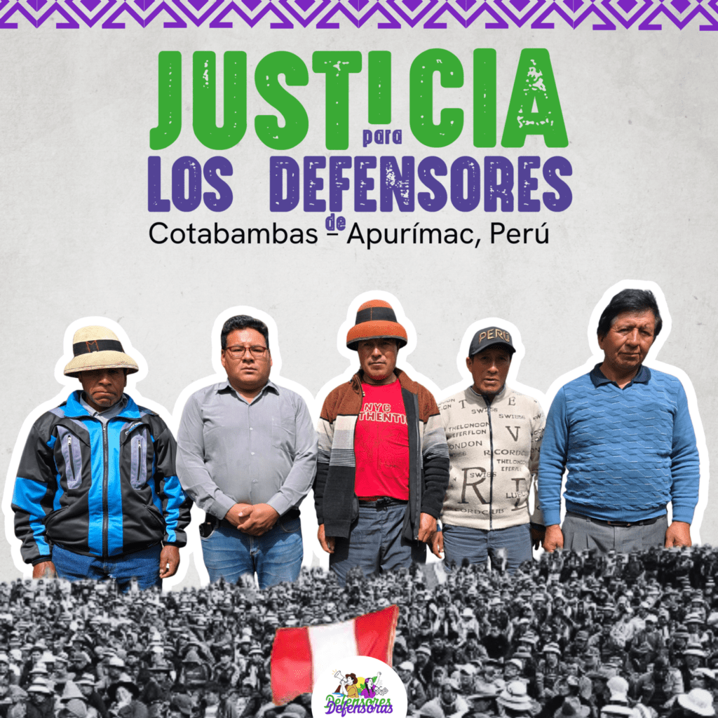 Como se recuerda en abril del presente año, se dio un fallo histórico, la Sala Penal de Apelaciones de la Corte Superior de Justicia de Apurímac revocó la sentencia que condenaba a 11 defensores de derechos humanos y líderes comunales de la provincia de Cotabambas y Grau, en Apurímac: Virginia Pinares Ochoa, Rodolfo Abarca Quispe, Ronal Andrés Bello Abarca, Juan Pablo Ccosnilla Gallegos, Jacinto Lima Lucas, Alem Torre Garcés, Maximiliano Huachaca Mamani, Walter Moreano Andrada, Romualdo Ochoa Aysa, Lizbeth Abarca Peña y Cosme Bolívar Escudero quienes habían sido sentenciados a penas de entre 8 y 9 años de prisión, así como al pago de una reparación civil descomunal Estado y a la empresa minera MMG Las Bambas S.A.C.