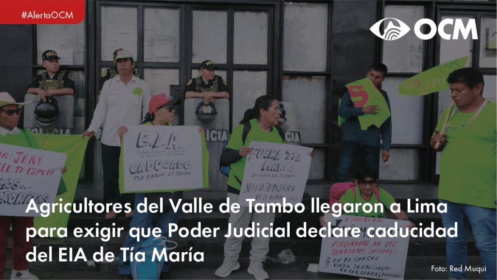 Este lunes 26 de enero, agricultores y dirigentes del Valle de Tambo se movilizaron hasta Lima para participar en una audiencia crucial de la acción de amparo presentada contra el proyecto minero Tía María, operado por Southern Perú. El proceso judicial busca que el Poder Judicial reconozca la caducidad del Estudio de Impacto Ambiental (EIA) aprobado en 2014 que, según los demandantes, perdió vigencia legal en el año 2019.