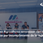 Los agricultores de Moquegua y Ilo amenazan con cerrar el proyecto Quellaveco ante el incumplimiento de la empresa Anglo American Peru en la construcción de la represa Asana, al considerar que esta situación pone en riesgo el acceso al agua para el valle y vulnera los acuerdos firmados hace más de una década.