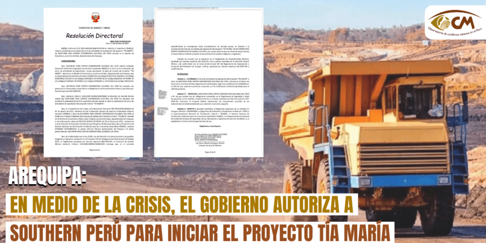 En medio de la crisis, el Gobierno autoriza a Southern Perú para iniciar el proyecto Tía María